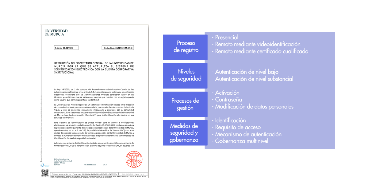 Uno de los grandes hitos que posibilitó la implantación del proyecto de onboarding digital en la Universidad de Murcia fue la actualización de la normativa interna que regula el sistema de identificación electrónica de la universidad. Hasta entonces, los procesos de identificación se limitaban a métodos presenciales y no contemplaban mecanismos remotos, lo que suponía un obstáculo para avanzar en la digitalización de los servicios universitarios.